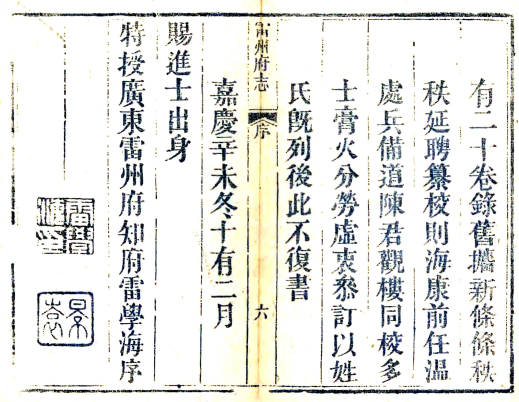 方志书名:嘉庆雷州府志 二十卷首一卷