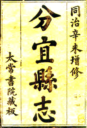 书名: [同治]分宜县志十卷首一卷(清)李寅清 (清)夏琮鼎修 (清)嚴升偉等纂 清同治十年(1871)刻本
