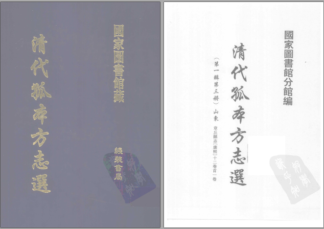 第一册 遵化州志[康熙]十二卷 博野县志[康熙]四卷第二册 涉县志[康熙]十二卷行唐县新志[康熙]五卷肃宁县志[康熙]一卷第三册 章丘县志[康熙]十二卷卷首一卷第四册...