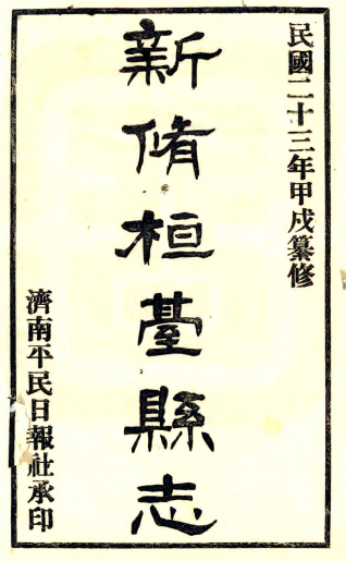 书名: [民国]新修桓台县志三卷 王元一[纂修] 民國二十三年鉛印本