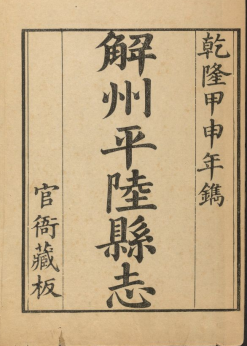 [乾隆]解州平陆县志十六卷首一卷 作者 (清)言如泗 清乾隆二十九年 66.3M