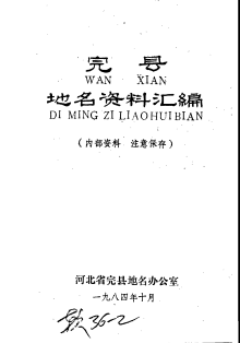 编纂单位:河北省完县地名办公室