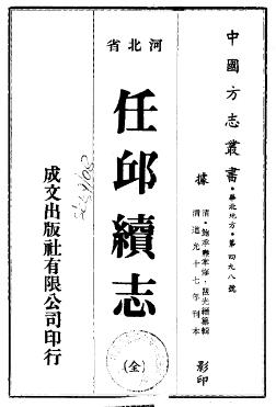 (清)鲍承焘掌修,瞿光缙纂辑,《任邱续志》,清道光十七年刊本