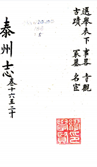 书名:[道光]泰州志三十六卷首一卷(清)王有慶修 清光緒三十四年(1908)刻本