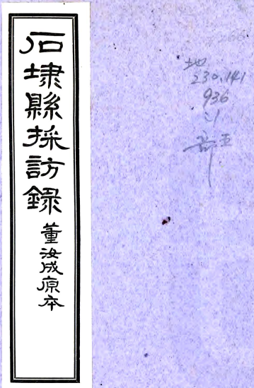 书名: 石埭县志采访录 (清)董汝成編 民國二十四年[1935] 鉛印本