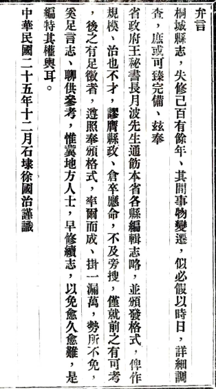 · [民国]桐城志略不分卷 徐國治纂修 民國二十五年鉛印本 PDF下载详细记录了本地的历史、地理、风俗、人物、文教、物产等是广大青少年、海外游子了解家乡、热爱家乡、传承历史文明、建设美好家乡的重要载体和平台的专书。