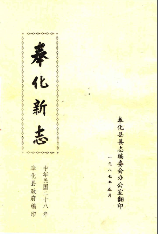 · 《奉化新志》 十一篇 民国修 1987翻印 PDF电子版详细记录了本地的历史、地理、风俗、人物、文教、物产等是广大青少年、海外游子了解家乡、热爱家乡、传承历史文明、建设美好家乡的重要载体和平台的专书。