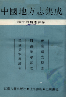 · 乾隆瑞安县志 同治景宁县志 民国景宁县续志_三部县志合一_PDF电子版详细记录了本地的历史、地理、风俗、人物、文教、物产等是广大青少年、海外游子了解家乡、热爱家乡、传承历史文明、建设美好家乡的重要载体和平台的专书。