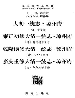 · 一统志·琼州府(四种).pdf下载详细记录了本地的历史、地理、风俗、人物、文教、物产等是广大青少年、海外游子了解家乡、热爱家乡、传承历史文明、建设美好家乡的重要载体和平台的专书。