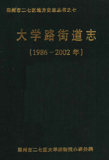 · 郑州市二七区大学路街道志 1986-2002 PDF电子版详细记录了本地的历史、地理、风俗、人物、文教、物产等是广大青少年、海外游子了解家乡、热爱家乡、传承历史文明、建设美好家乡的重要载体和平台的专书。