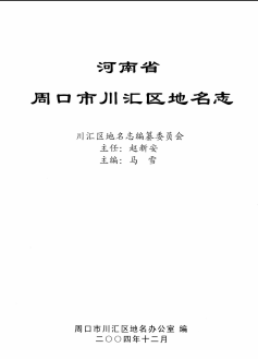 编纂单位:周口市川汇区地名办公室