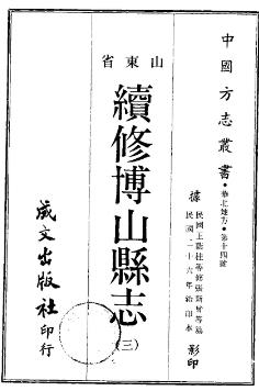 续修博山县志,于民国26年[1937]博山三元堂书店出版,总册数为8册。责任者 王荫桂 出版者 博山三元堂书店 出版时间 民国26年[1937] 版本 铅印本