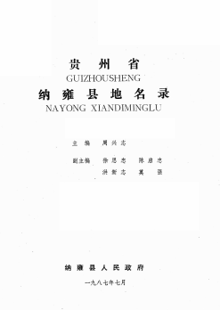 · 贵州省纳雍县地名录 1987版.pdf下载详细记录了本地的历史、地理、风俗、人物、文教、物产等是广大青少年、海外游子了解家乡、热爱家乡、传承历史文明、建设美好家乡的重要载体和平台的专书。